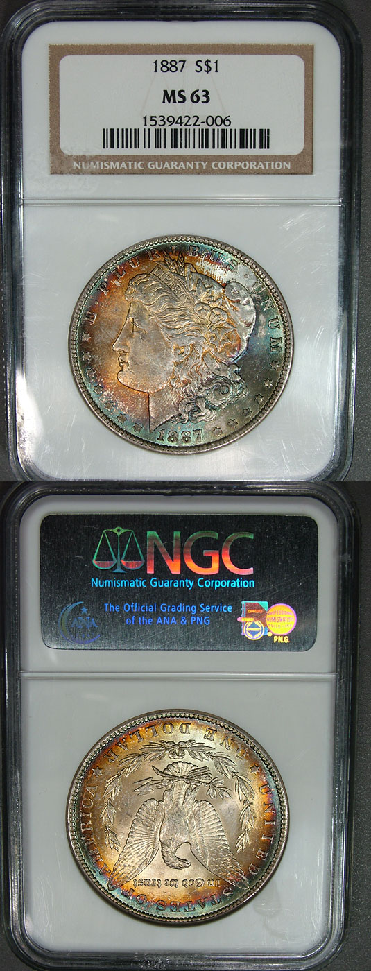 1887 $1 NGC MS63 Target Blue Gold Toned Morgan Dollar