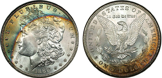 View the largest gallery of high-end and Monster rainbow toned Morgan dollars, an informational guide on how to tell natural vs. artificial toning, learn to price toned Morgans, view auction results of rainbow Morgans, and view what characteristics to look for in high-end toned rainbow Morgan dollars.