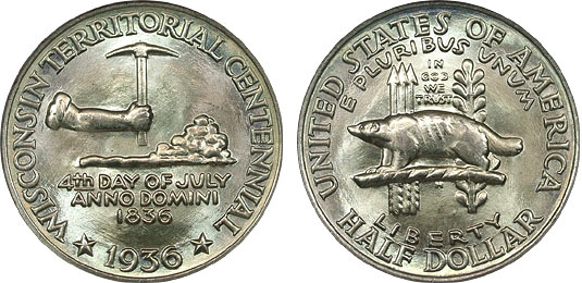 1936 50c PCGS MS67 Pearlescent Toned Superb Wisconsin