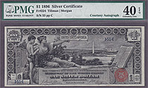 The third issue of Silver Certificates, Series 1896, is one of the most popular and deemed by collectors as the most beautiful series ever produced by the United States. Titled the "Educational Series," the notes were designed or redesigned by Thomas F. Morris, designer and chief of the Engraving Division of the Bureau of Engraving and Printing. Other designers of this famed series were Will H. Low, $1, Edwin H. Blashfield, $2, and Walter Shirlaw $5. Known engravers of the series were Charles Schlecht and George F.C. Smillie.