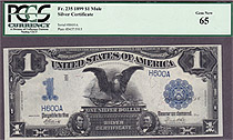 This is a very nice Fr.-235 1899 $1 Silver Certificate Black Eagle with a nice serial number of H600A. It is in a PCGS-65GEM holder. This is a nice note for you fancy serial number collectors....