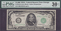 Here is a very nice totally problem free 1934A $500 bill from the Chicago district. It has never been pressed or cleaned. It is housed in a PMG VF-35E...