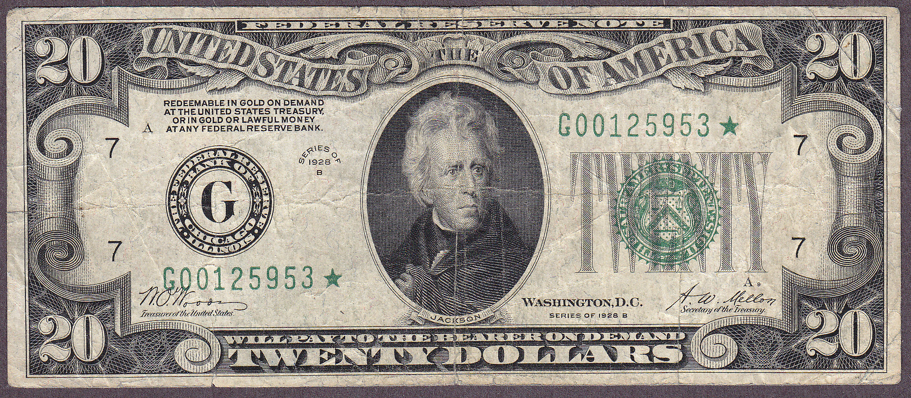Fr.-2052* 1928-B $20 Chicago Ser. G00125953* Raw