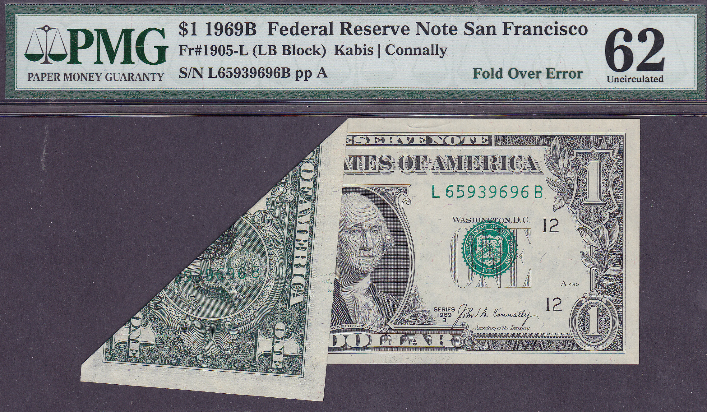 Fr.-1969B 1969 $1 San Fran Major Fold Over Error Ser. L65939696B PMG 62